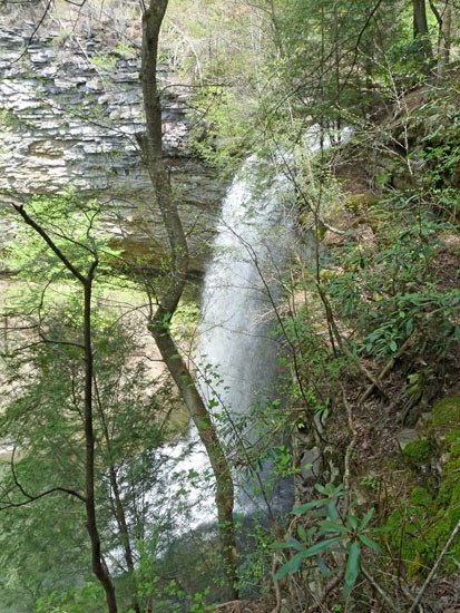 You are actually on top of the falls as you arrive, very near to where the water plunges over the edge and becomes the Upper Piney Falls.