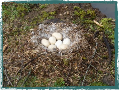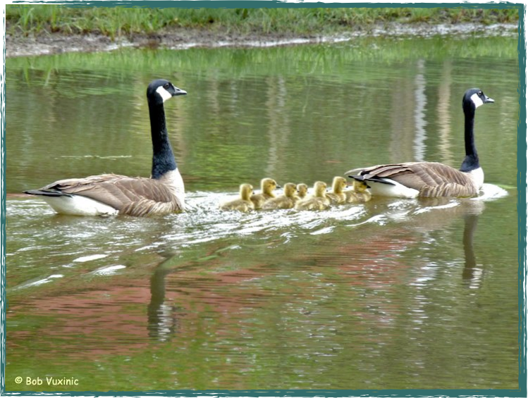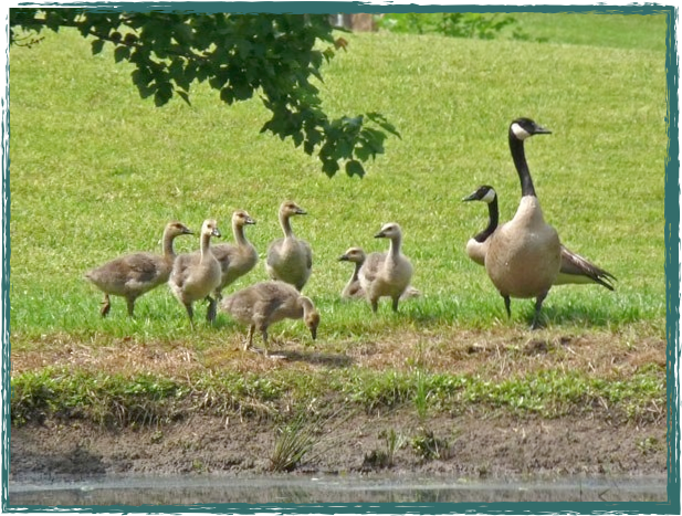 raising their family: 7 eggs; 7 goslings, and they never lost one.