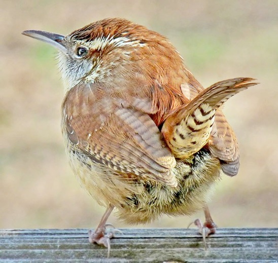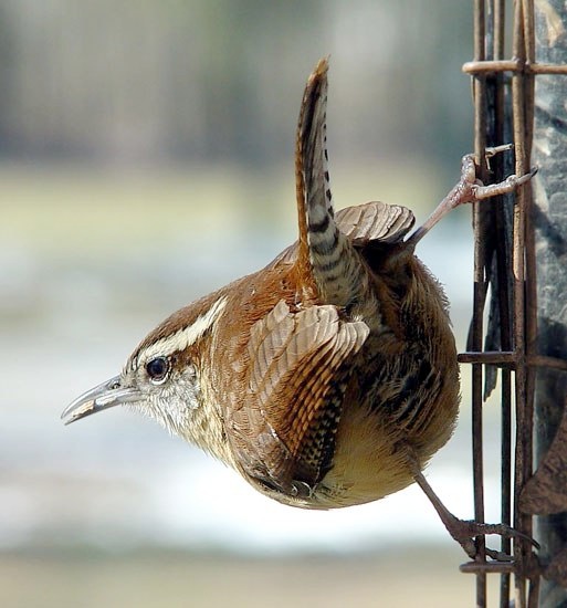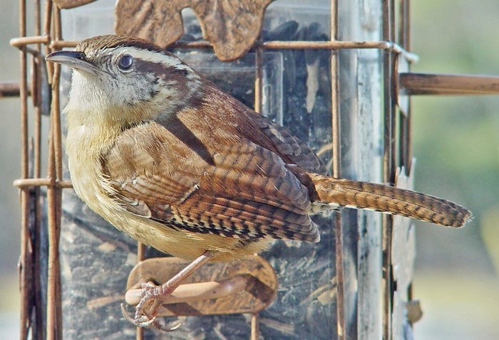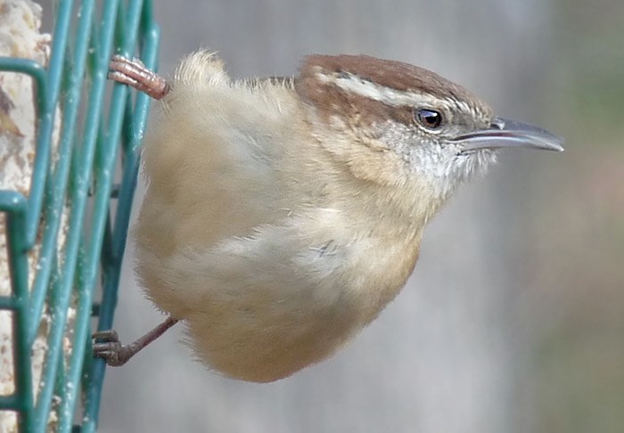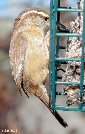 I never mind showing more photos of the Carolina Wren. They really like using our structures as