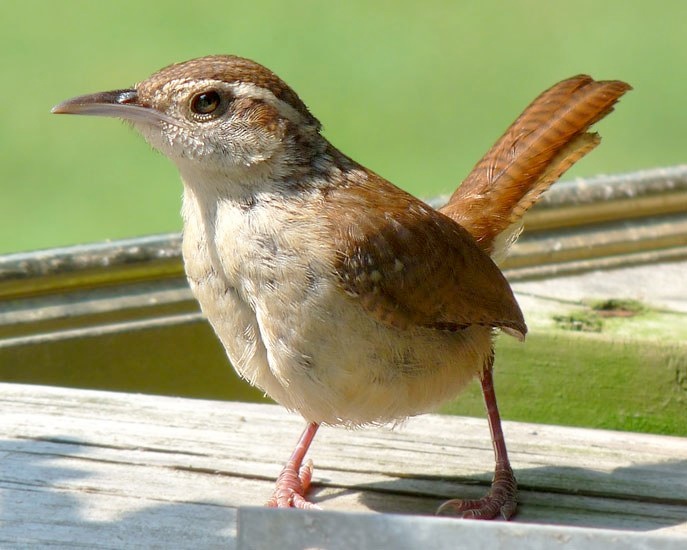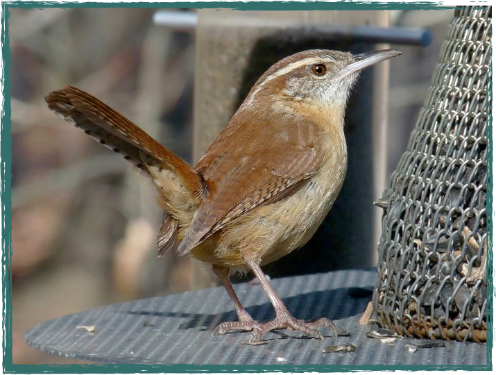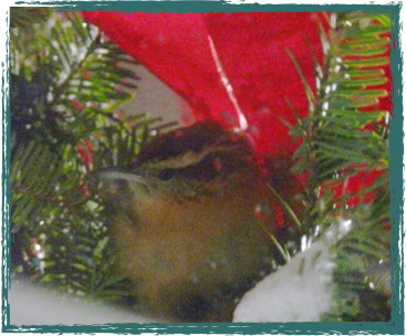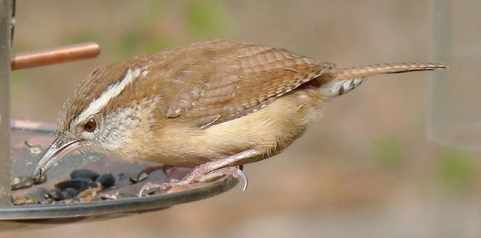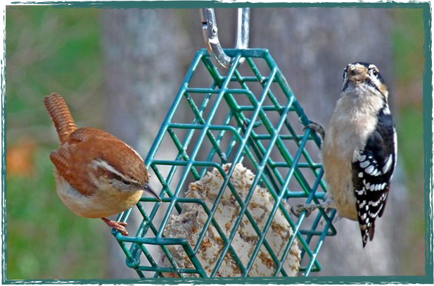 another one: a Downy Woodpecker came from the right while a Carolina Wren arrived from the left. There