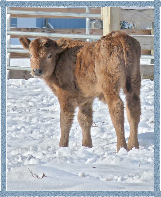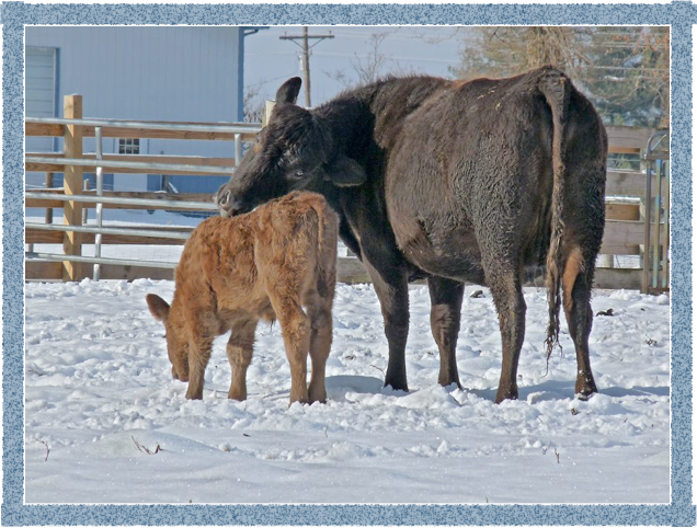 Continuing toward the road on the driveway, I get to our neighbor’s cattle yard where mom is keeping her little one clean and tidy.