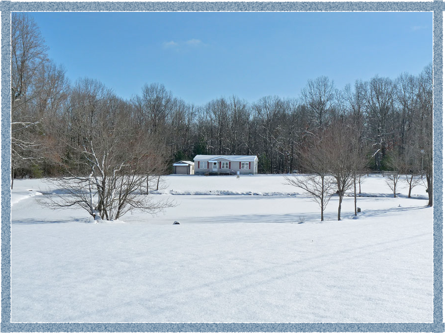 Then I turn right, walking across the front of our property and looking back at the frozen pond and house beyond.